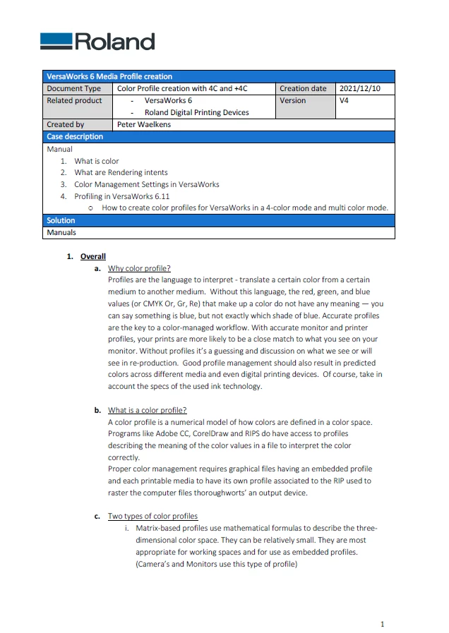 Roland Eco Solvent - Media Profile